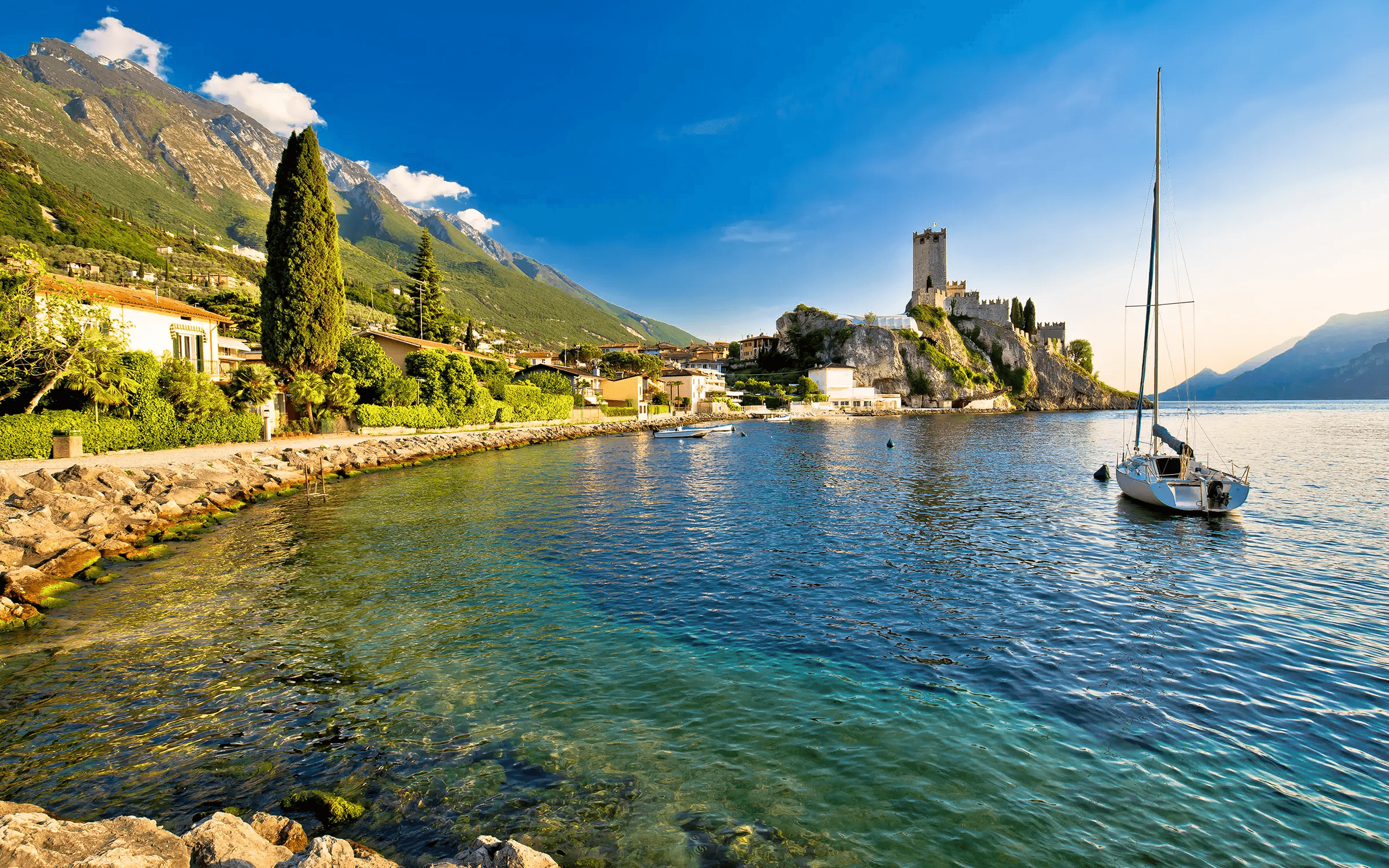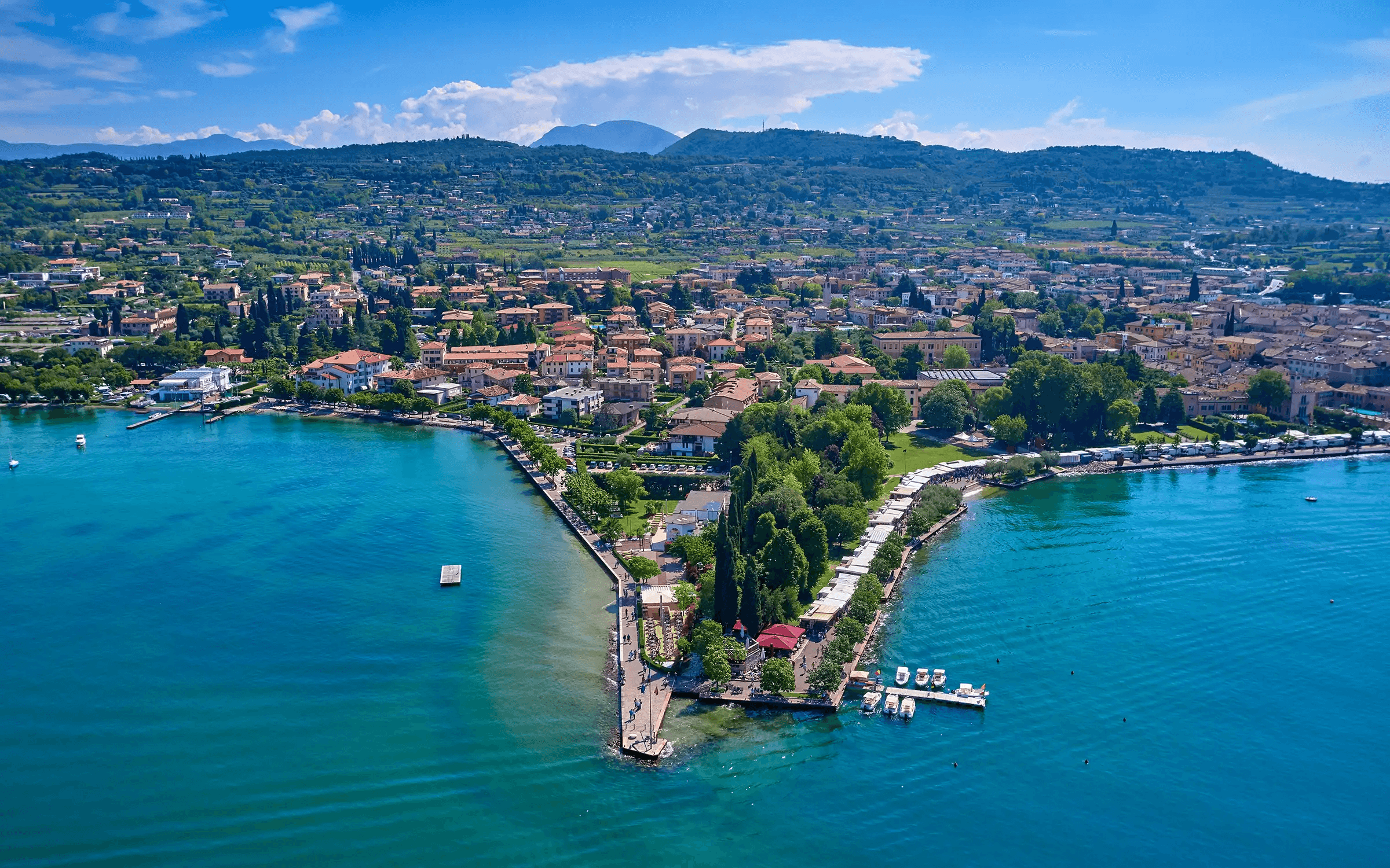 • Den glittrande Gardasjön med alla vackra små städer.