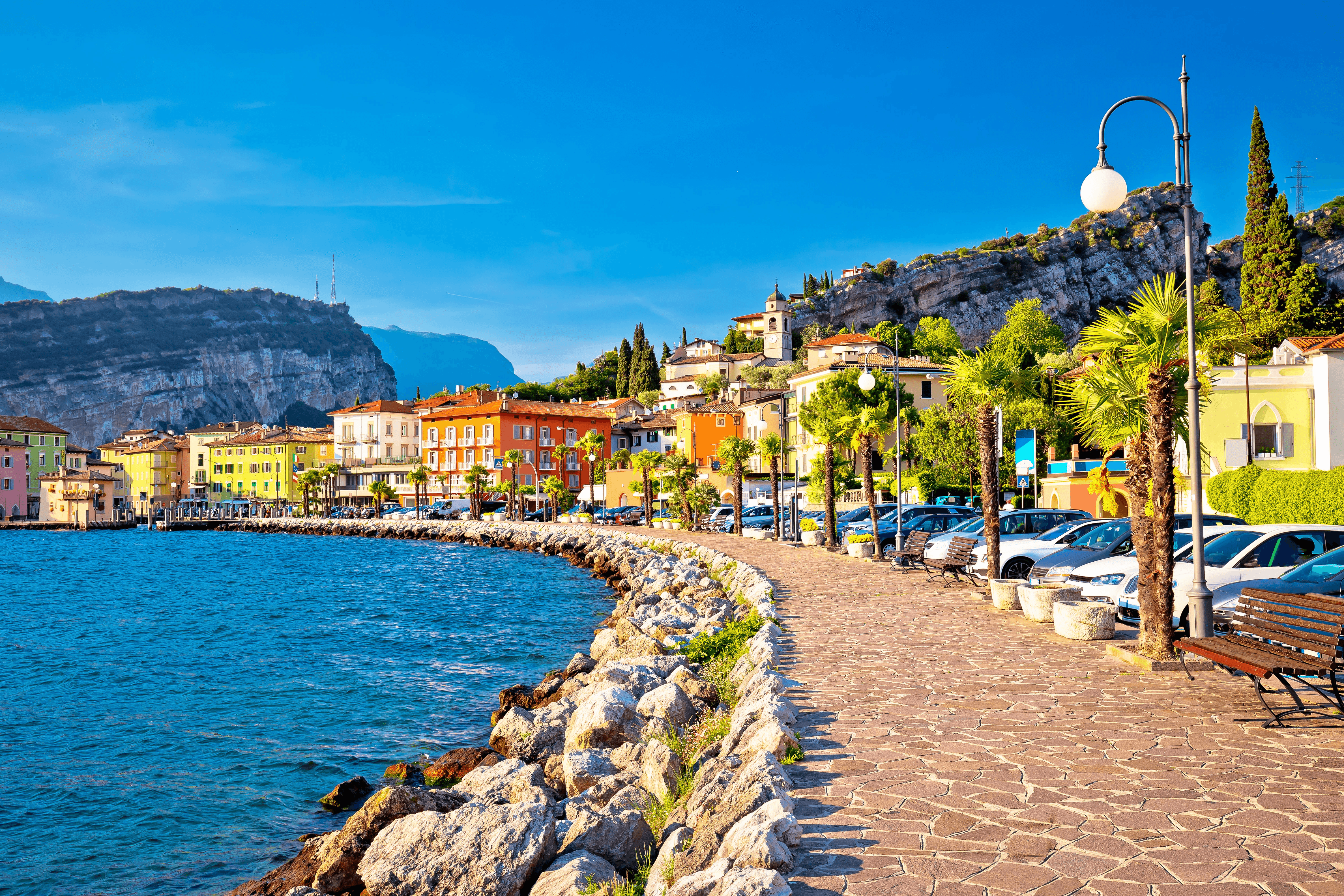 Du börjar i Riva del Garda / Torbole. Städerna är underbart belägna vid den norra änden av Gardasjön. Det blir spektakulär och spännande klättring både vid Riva del Garda och i den unika Brenta-delen av Dolomiterna – den senare finns med på Unescos världsarvslista!