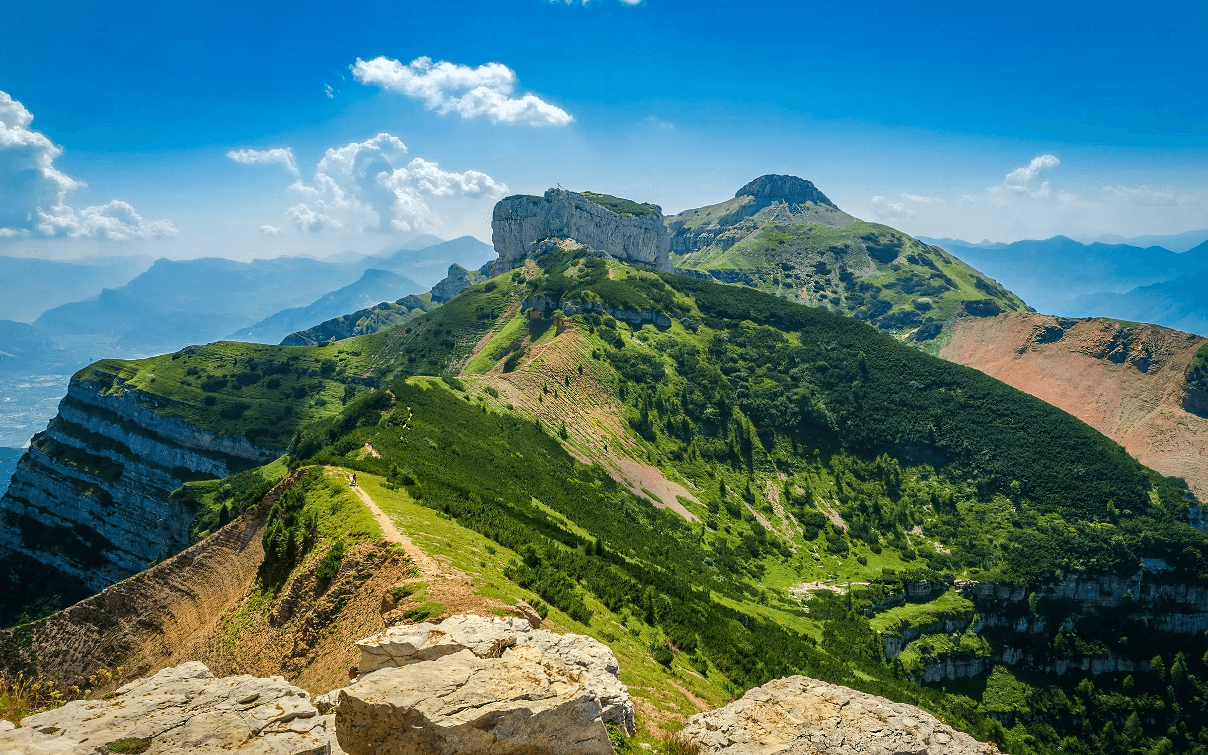 Dagens aktivitet börjar med en kort bussresa till startpunkten för Via Ferrata Cima Capi. Här tar du på dig klätterselarna och börjar med ca. 1 timmes vandring innan en kort teknisk genomgång av utrustning och teknik. På vägen upp till toppen får du så småningom en mäktig utsikt över Sarcadalen, Gardasjön och Dolomiterna. Fantastiskt att stå på toppen och se ut över det helt unika landskapet.