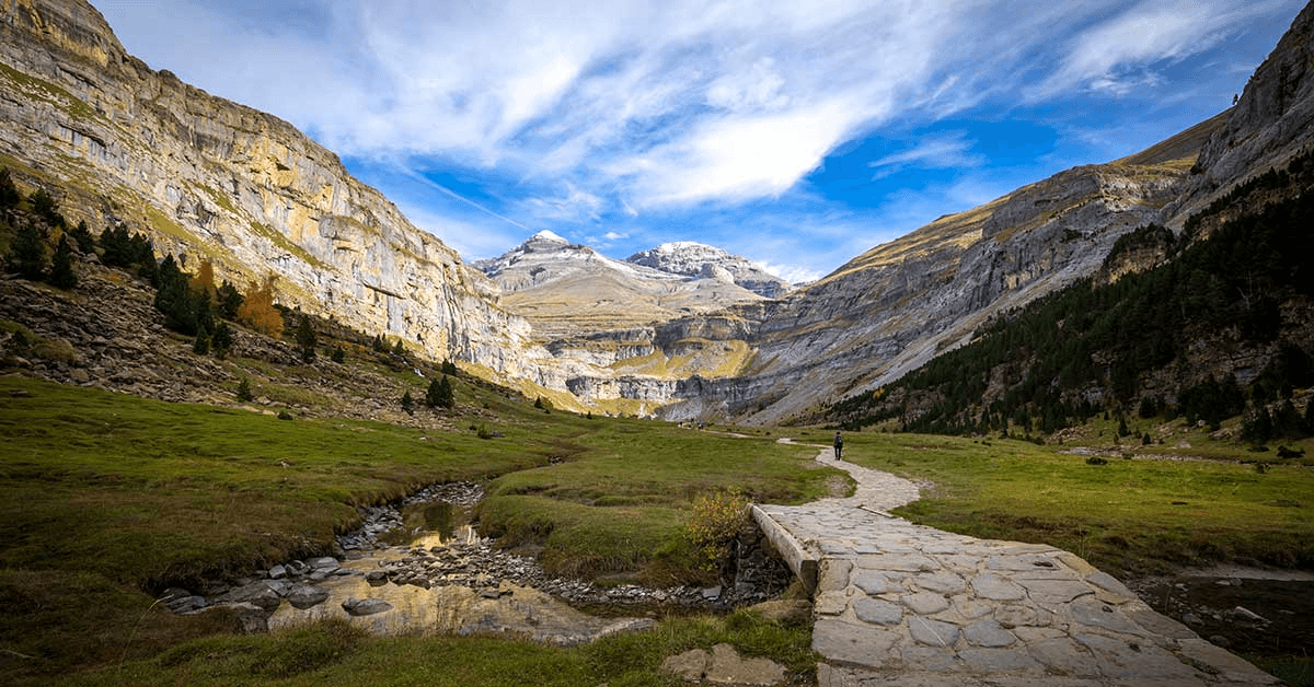 På den tredje dagen anländer vi till Torla, staden som ligger längst in i dalen. Här stannar vi en extra natt för en heldags vandring i en verkligt spektakulär natur – vi går i ravinen i Ordesa nationalpark.