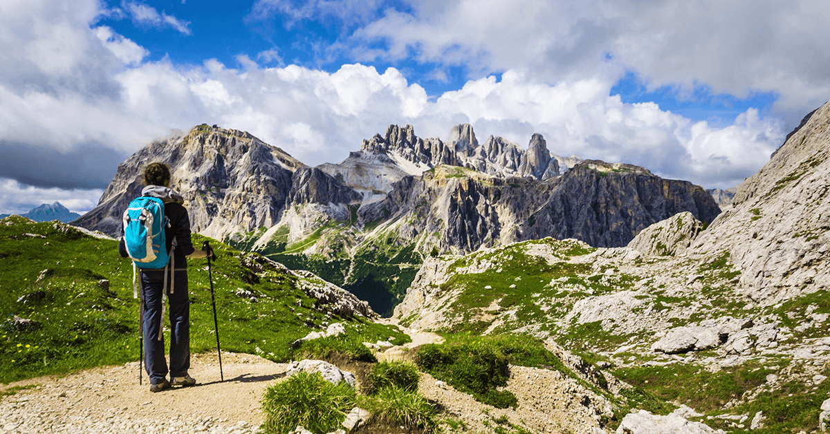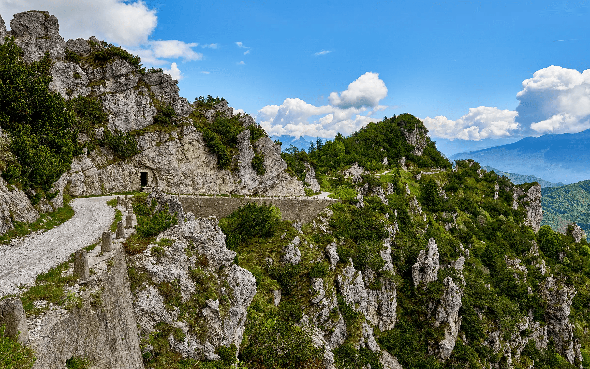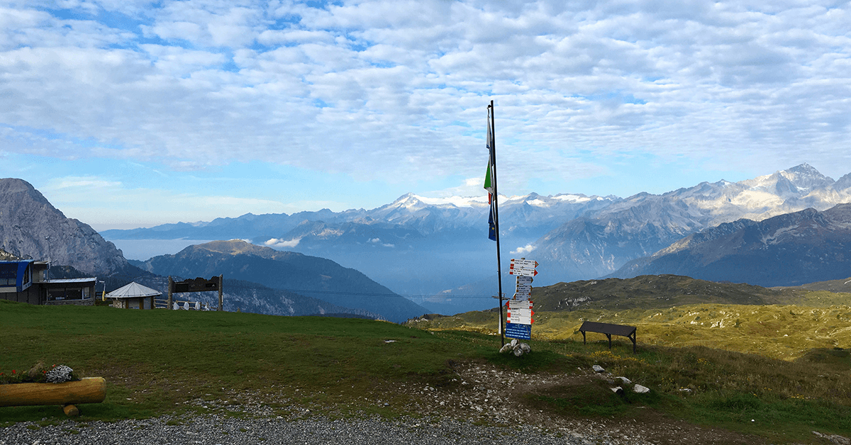 En fantastisk tur på gamla vagnvägar och stigar, hela tiden med magiska vyer över Dolomiterna och Gardasjön.