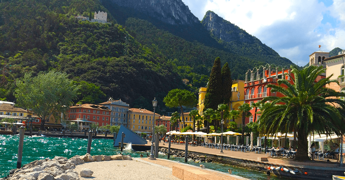 På norra sidan av Gardasjön ligger städerna Riva del Garda, Torbole och Arco.