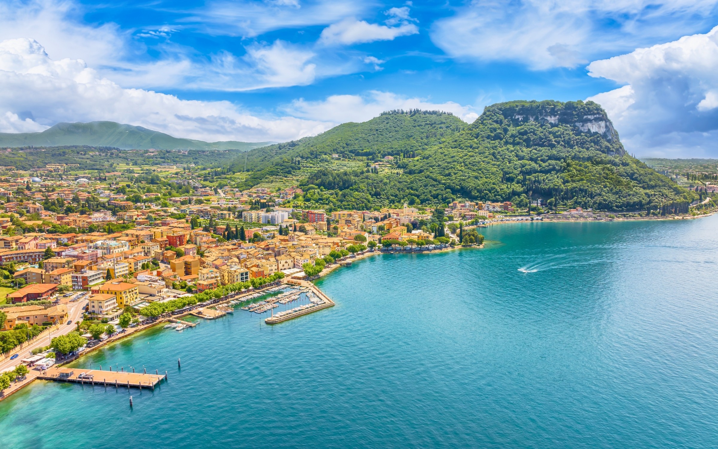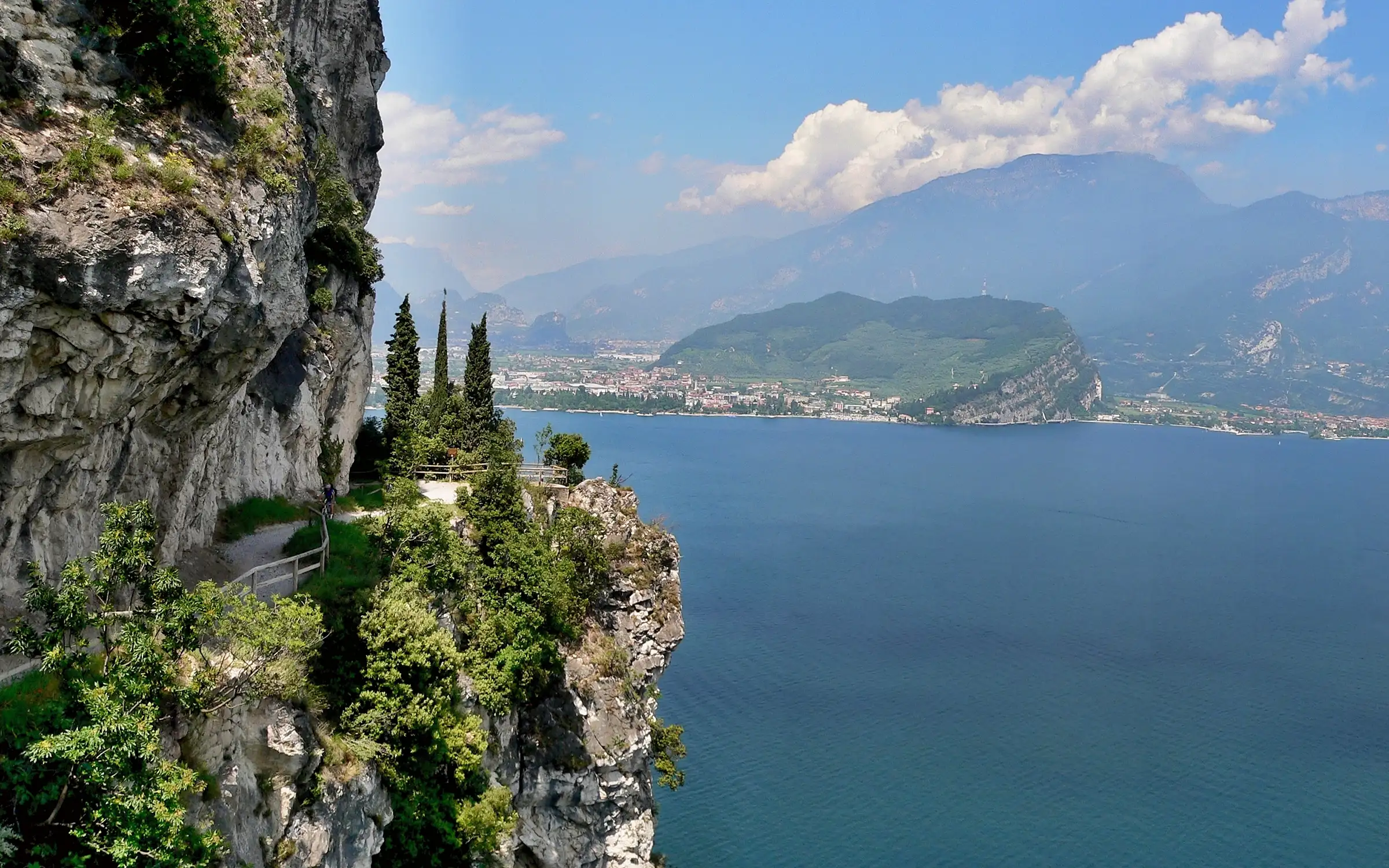 Riva del Garda är en av de mest ikoniska platserna vid Gardasjön. Belägen mellan sjön och Brenta Dolomiterna, är den inbäddad i en unik miljö. Den charmiga staden klättrar på klippan och erbjuder panoramautsikt från Bastione, den historiska stenfästningen som reser sig majestätiskt över byn. Detta är platsen för dem som älskar att gå från olika aktiviteter i naturen till konstställningar, från ostprovning till besök på vingård.