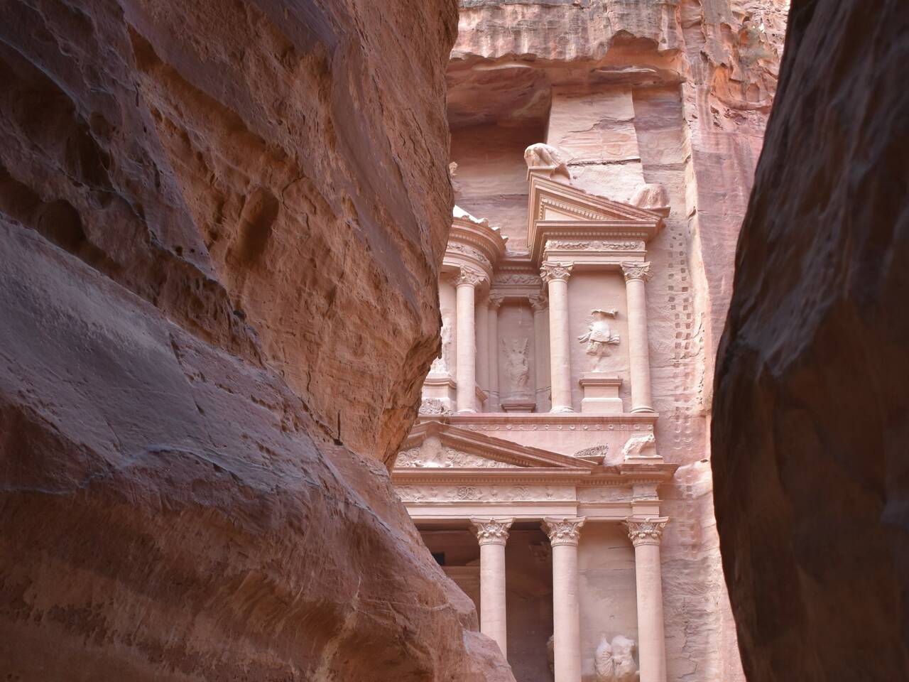 Idag tillbringas en hel dag i Petra – ett mästerverk hälften så gammalt som tiden själv, den röda rosens stad. Förundras över skönheten i den “förlorade staden” när du utforskar dess många grottor, gravar och smala klippgångar. Promenera genom den slingrande Siq, den dramatiska kanjonen som leder fram till den magnifika Skattkammaren – stadens ikoniska ingång som vaktar denna antika nabateiska stad, idag ett av världens sju moderna underverk.