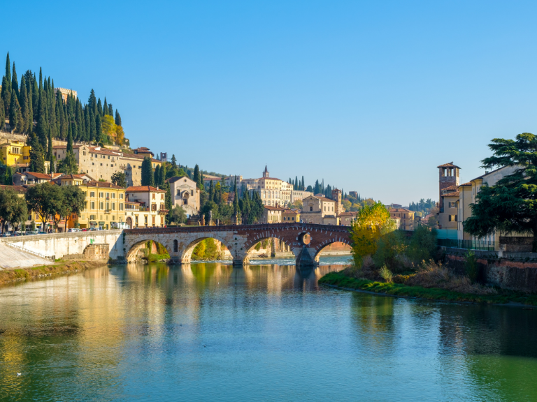 Verona är en av Italiens mest stämningsfulla städer med romerska rötter, en välbevarad historisk stadskärna, livfulla torg och vackra miljöer, känd som platsen för Shakespeares Romeo och Julia. Floden Adige slingrar sig genom staden och gör den perfekt för promenader, upptäckter och lunch i centrum.